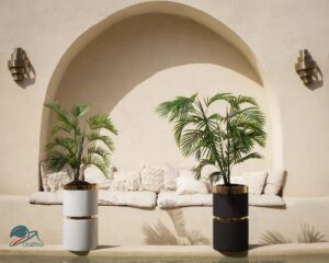 Manufactured from reinforced fiberglass, this planter combines lightweight construction with structural durability. Its two-section form enhances visual interest without complicating the overall design, making it suitable for modern villas, hotel interiors, reception areas, retail boutiques and commercial projects across the UAE and GCC region.