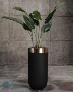 Seri 25 is particularly suitable for medium-height decorative plants such as ficus, ornamental palms, snake plants, or structured greenery. The metallic detailing elevates the planter into a refined design element without overwhelming the surrounding space.